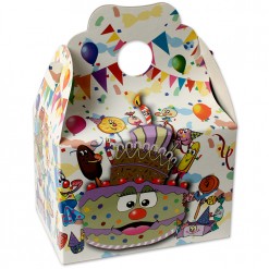 Caja con surtido de chuches, con Sweet Party. Un obsequio idela para niños y niñas en bautizos, bodas , cumpleaños, comuniones... Contiene: 1 Chupa chup, 1 piruleta, 1 haribo ositos, 1 conguito, 2 gummy, 1 sugus,1 pica candy, 1 palote, 1 plátano, 1 nube, 1coca cola, 1 gusifrit.Si quieres pudes añadir una postal con mensaje personalizado. Sólo debes marcar la opción de enviar una postal con mensaje personalizado, escribirlo y lo añadiremos para ti.