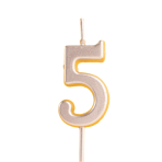 Vela metalizada color plata número 5, con pincho para clavarla en la tarta.