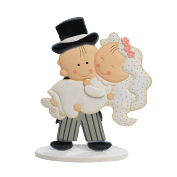 Figura de metal que representa a un novio cogiendo en brazos a la novia. Es de la colección Pit&Pita y es la figura ideal para todo tipo de enlaces.
