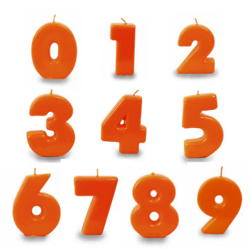 Estas velas de color naranja miden 8,5 cm de alto, perfectas para utilizar como decoración en las fiestas de cumpleaños o eventos especiales.