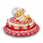 Figura para tarta de Bautizo o Baby Shower, la típica cigüeña que en esta ocasión lleva un niña. Quedará genial en una de nuestras tartas de chuches, o en una tarta convencional.