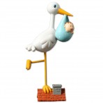 Figura para tarta de Bautizo o Baby Shower, la típica cigüeña que en esta ocasión lleva un niño. Quedará genial en una de nuestras tartas de chuches, o en una tarta convencional.