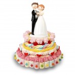 Tarta de boda de chuches SIN la figurita de novios incluida.